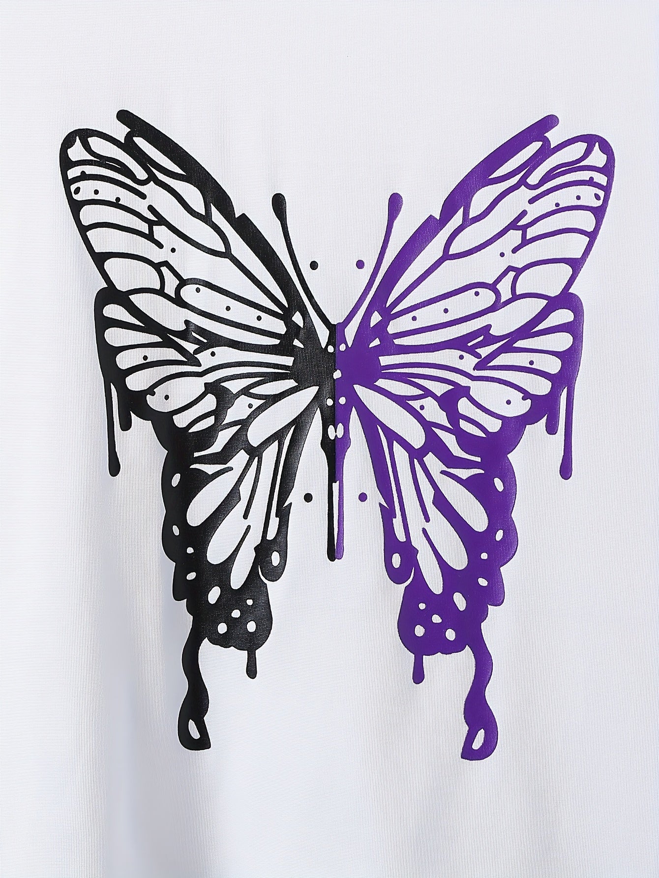 Women's Butterfly Print Lounge Tops Short Sleeve Crew Neck All-Season Knit Fabric