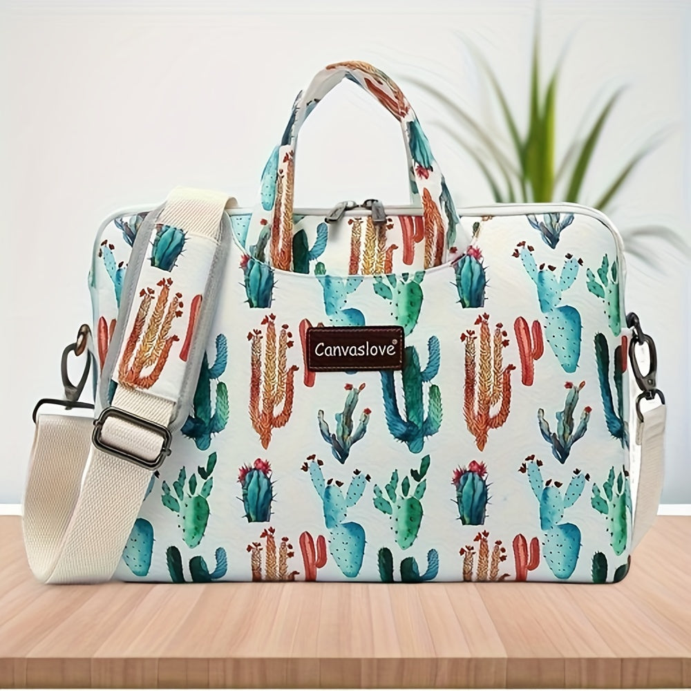 Water-Resistant Canvas Laptop Bag with Rose Pattern and Adjustable Shoulder Strap
