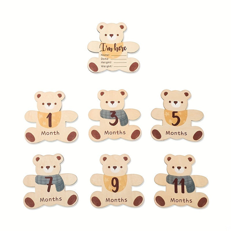 First Year Milestone Teddy Bear Photo Props Set for Birth Announcements and Celebrations