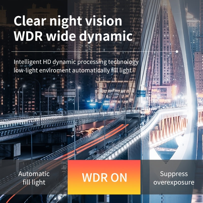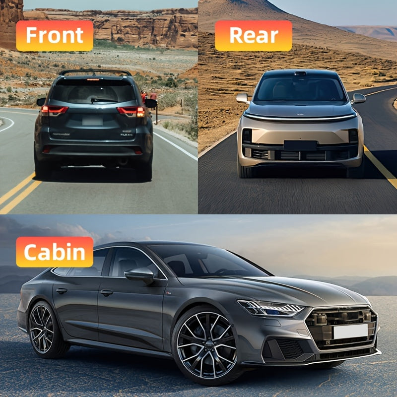 Car Dash Cam 1080P 3-Channel Night Vision Wide Angle Loop Recording Black
