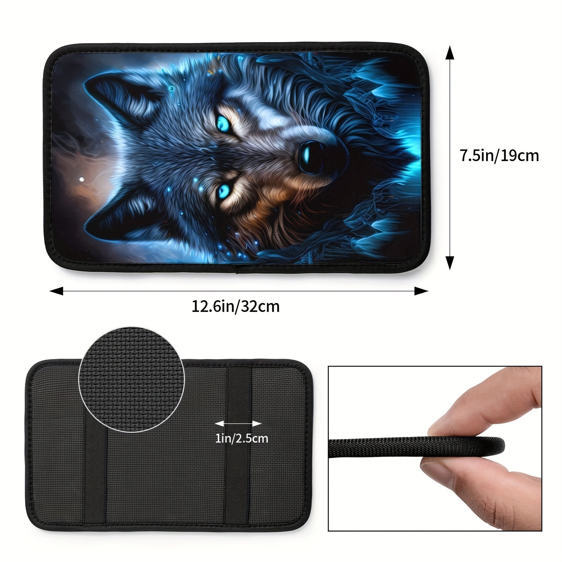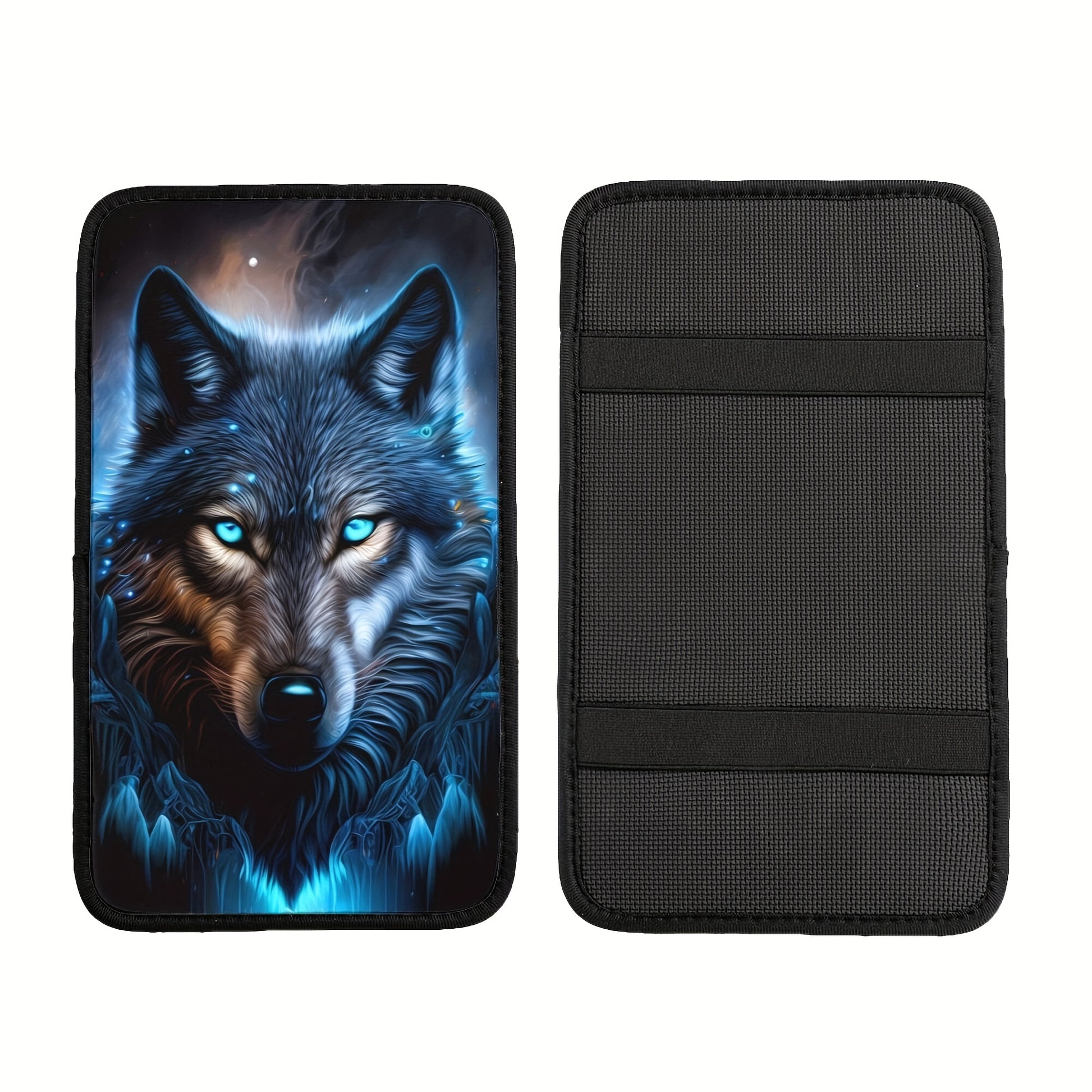 Car Interior Accessories Blue Wolf Pattern Center Console Cover Armrest Mat
