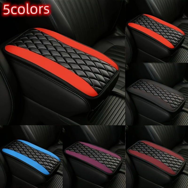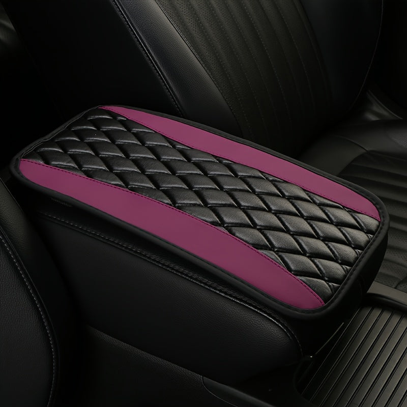 Car Interior Non-slip PU Leather Armrest Pad Cover with Diamond Stitch