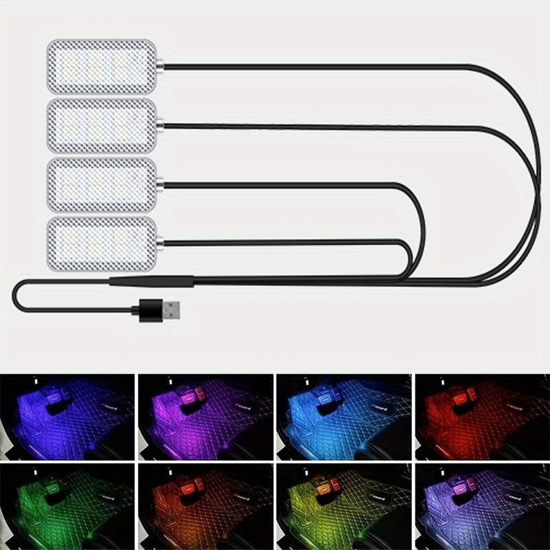 Car LED Foot Light Auto Atmosphere Lamp USB Powered Monochrome Black