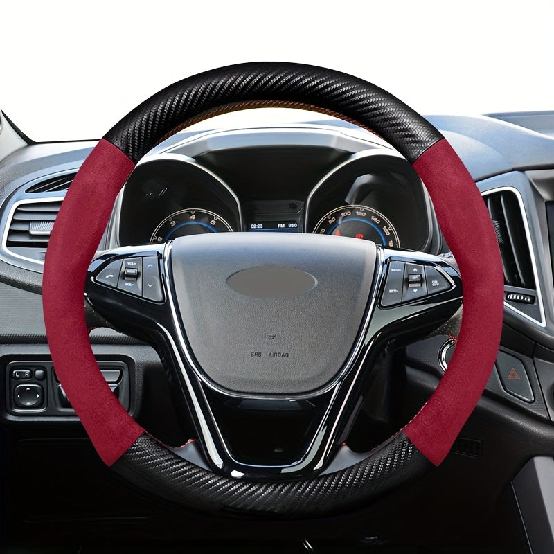 Car Steering Wheel Cover D-Shaped Carbon Fiber Texture Plush Fit 37-38.5cm