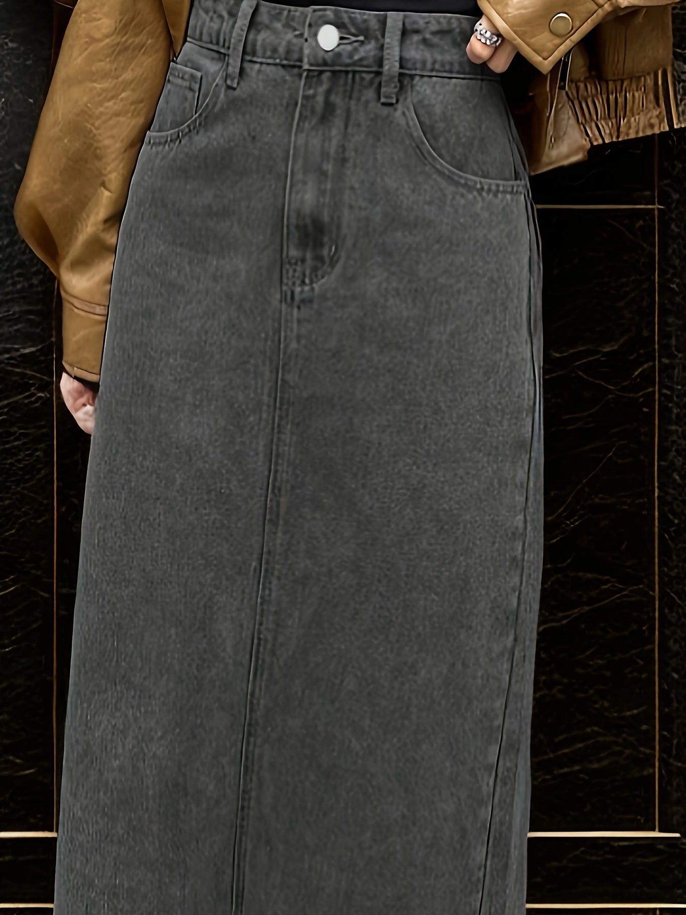 Women's Denim Skirt Wash Grey Split Back Casual Summer Non-Stretch Straight