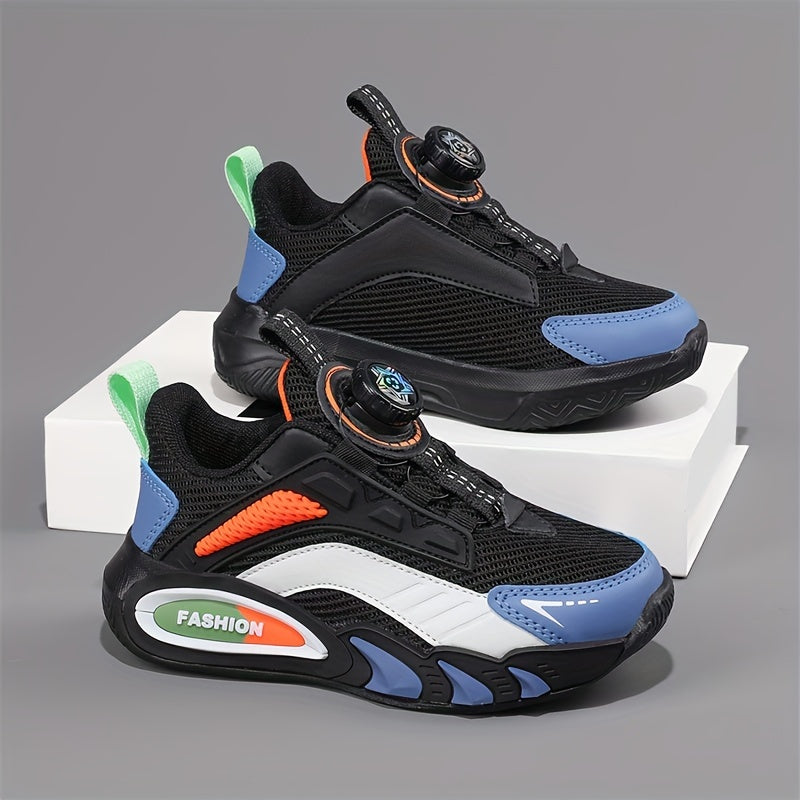 Boys' Low Top Breathable Sneakers with Rotating Button for Running and Casual Wear