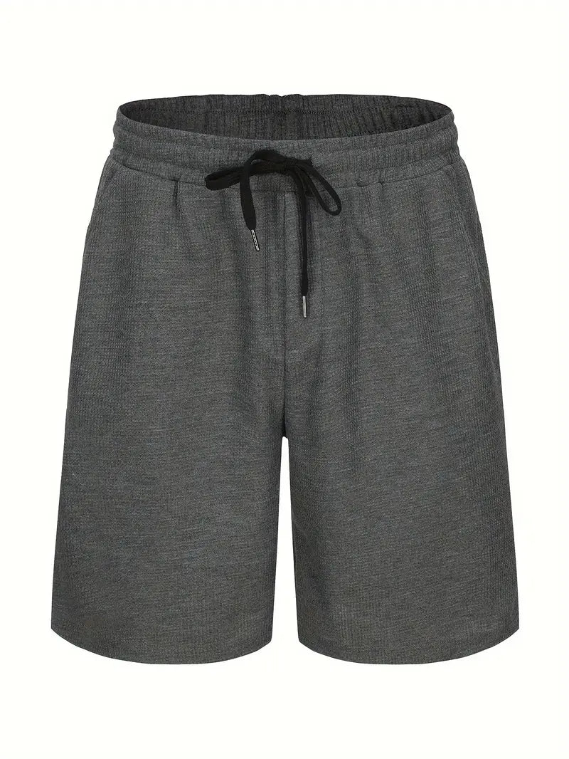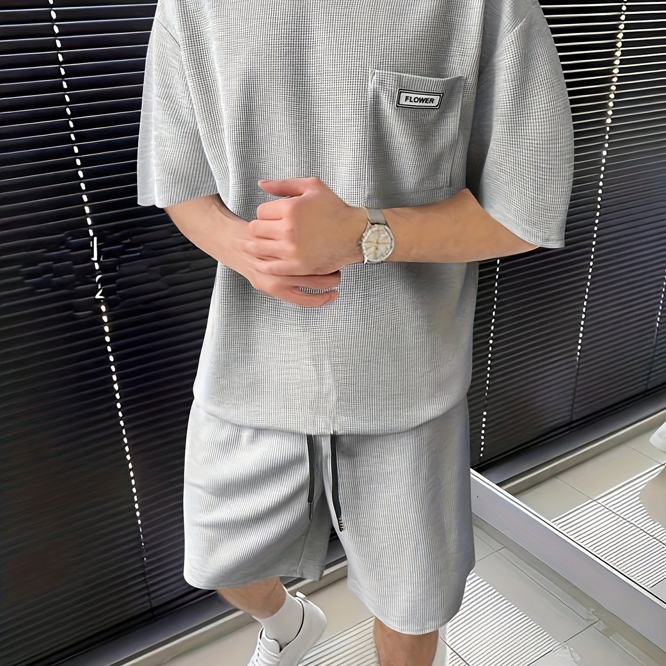 Men's Summer Casual Polyester Knit Shorts Sports Suit Solid Color Crew Neck Regular Fit