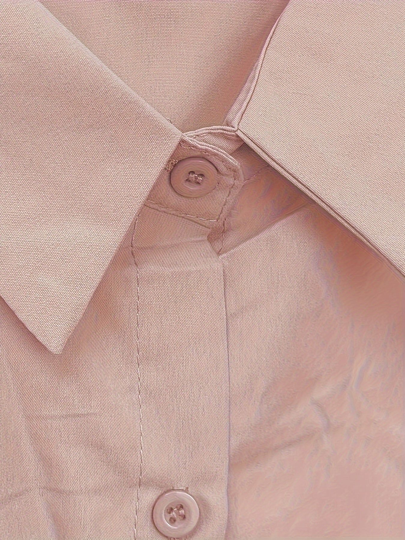 Women's Casual Oversized Midi Shirt with Lapel Collar and Button Details in Polyester Spandex Blend