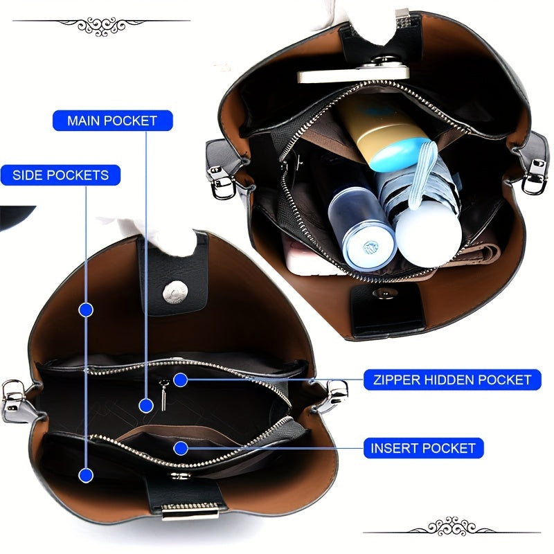 Women's Casual Water-Resistant PU Tote Bag with Detachable Shoulder Strap