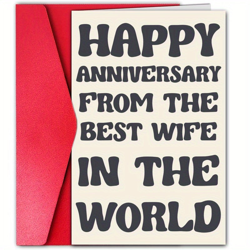 Funny Wedding Anniversary Greeting Card for Wife with Cartoon Design on White Paper