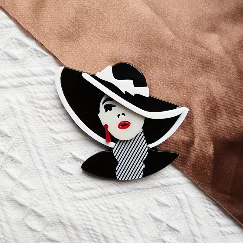 Stylish Acrylic Brooch with Red Glasses and Flower Design