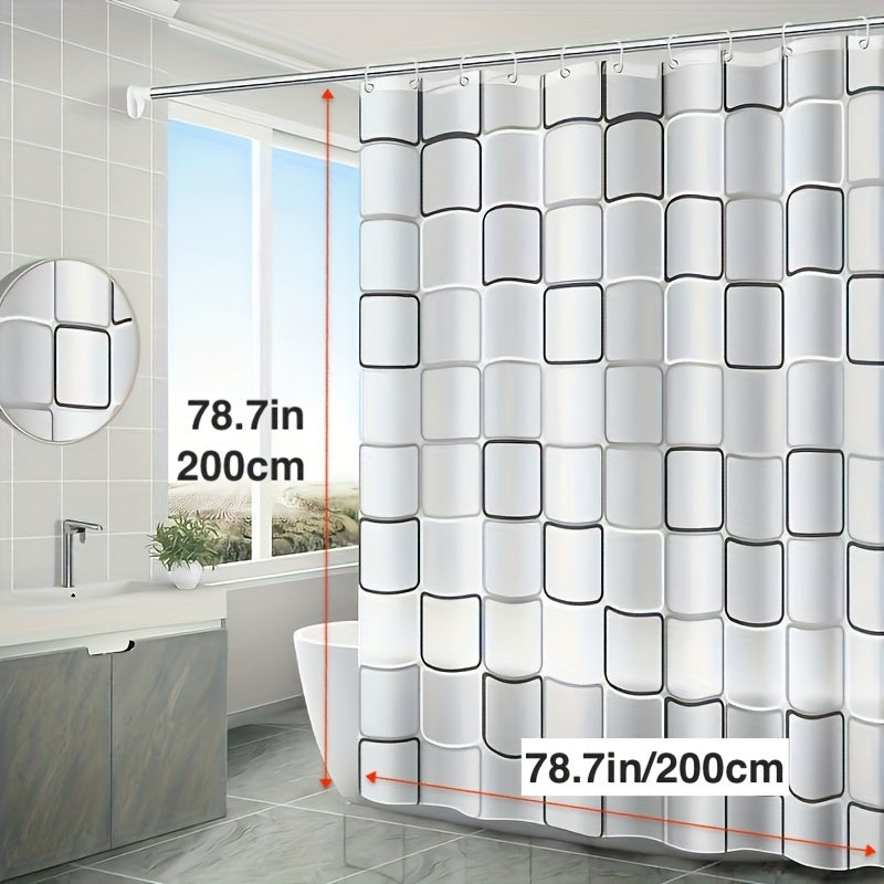 Checkered PEVA Shower Curtain Liner Waterproof Semi-Transparent with Hooks Bathroom Decor