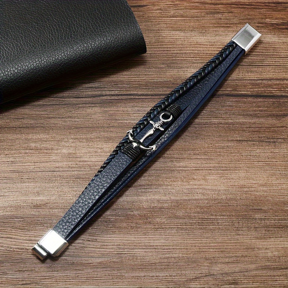 Minimalist Anchor Leather Bracelet for Men Black PU Leather Jewelry