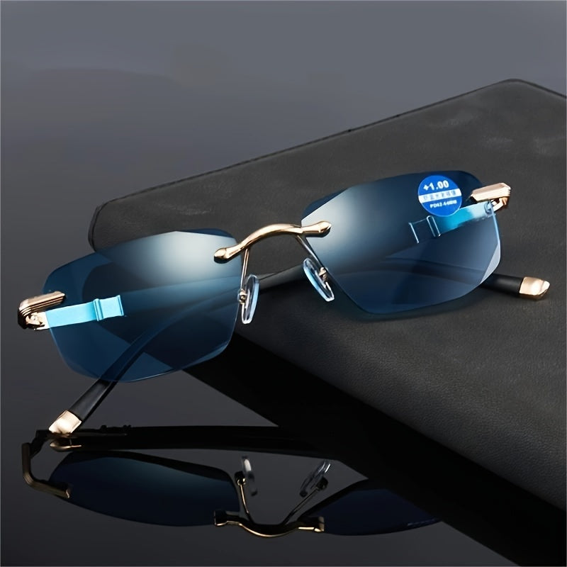 Unisex Blue Faceted Lens Reading Glasses with Metal Frame