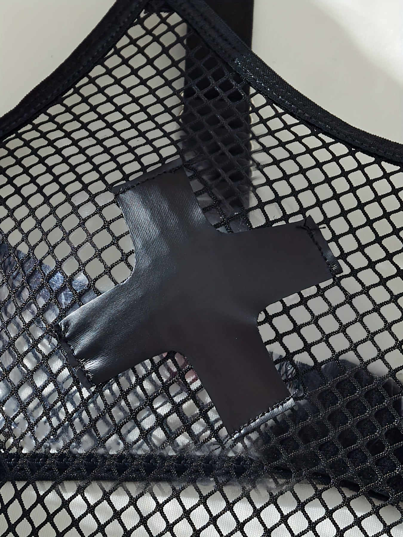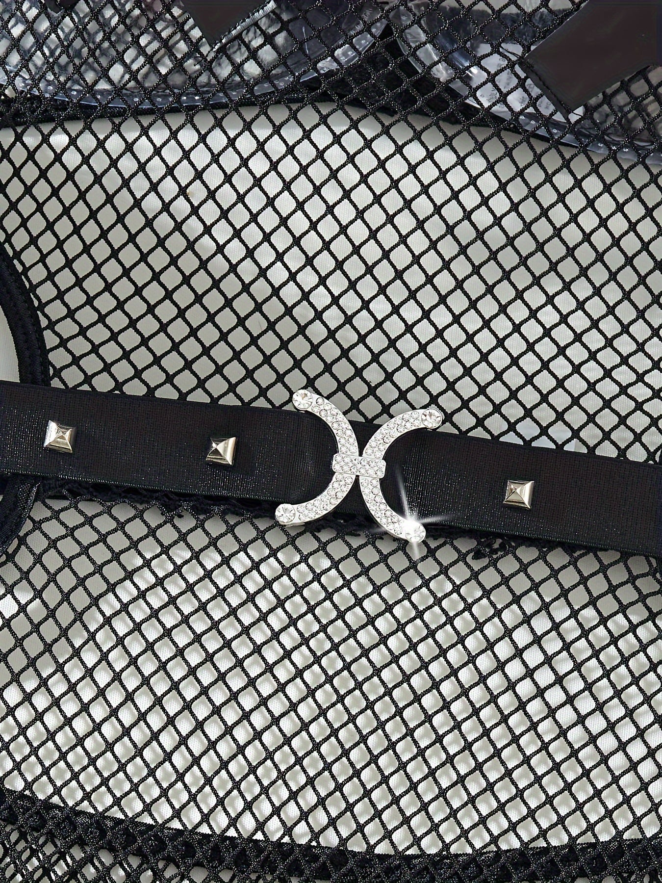 Black Mesh Bodysuit for Women with Bow Detail and Adjustable Straps