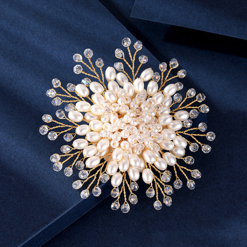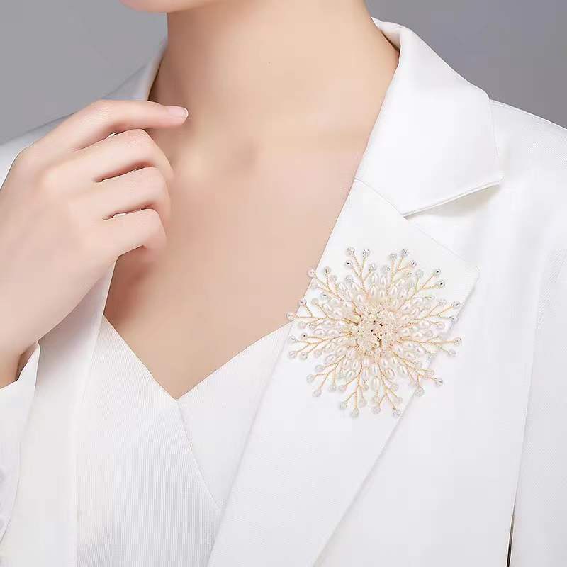 Faux Pearl Snowflake Brooch for Women Handcrafted Elegant Jewelry for Weddings