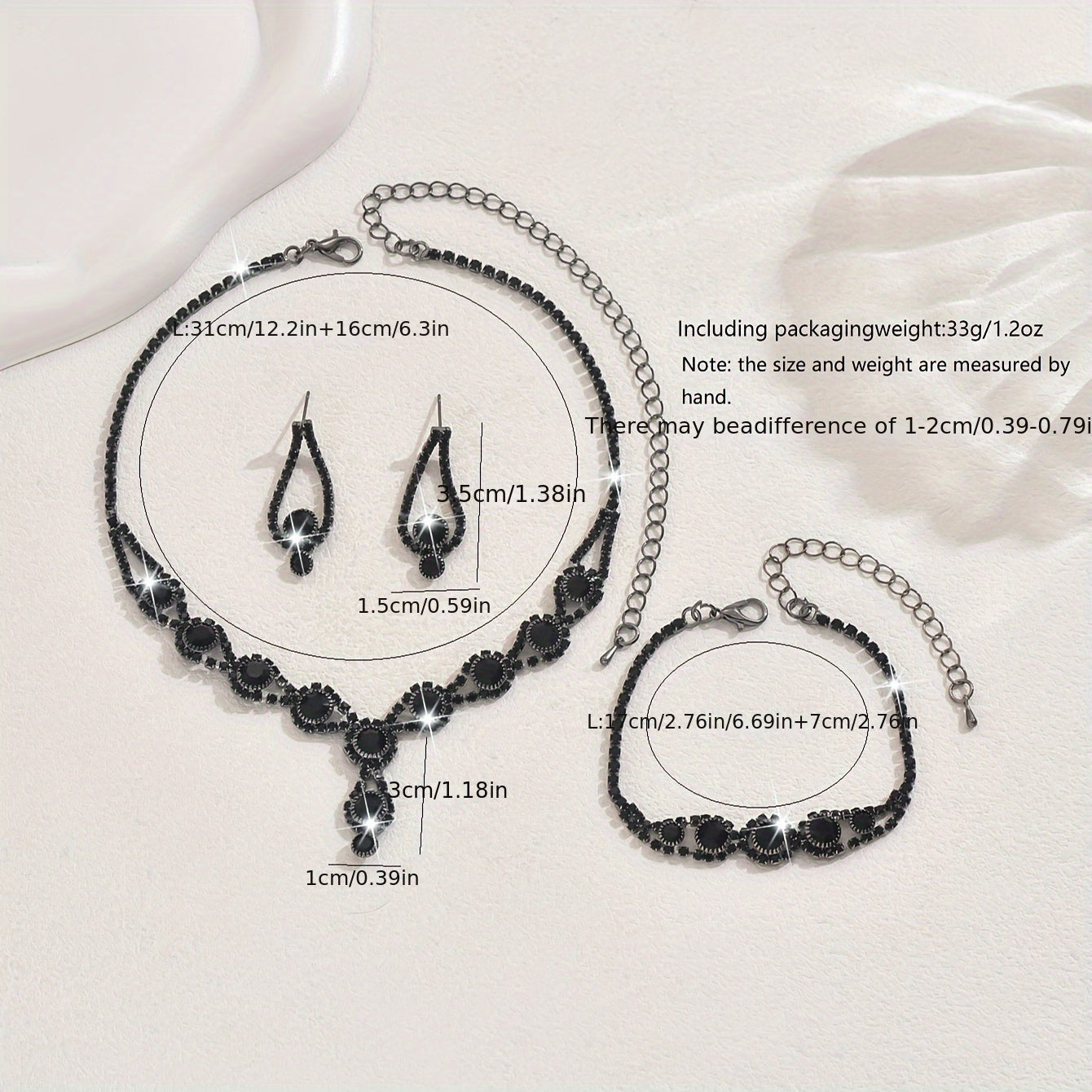 Silver Plated Copper Jewelry Set with Blue and Black Rhinestones Necklace Earrings Bracelet for Parties Weddings