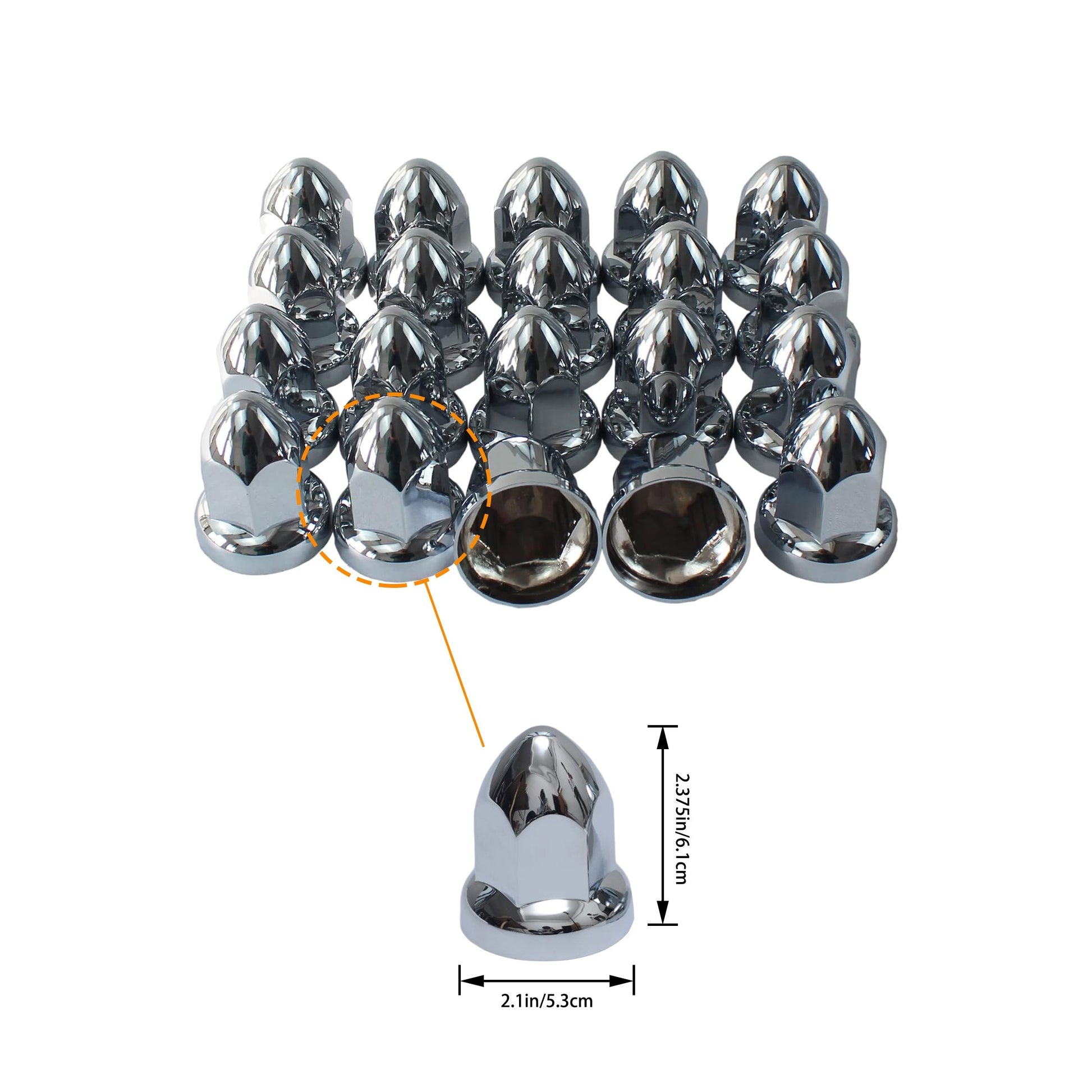 Chrome 33mm Lug Nut Covers Bullet Style Pack of 20 for Semi Trucks