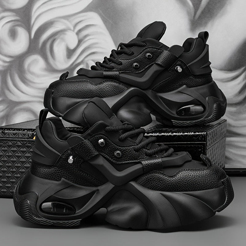 Men's White Chunky Sneakers Breathable Cushioned Low Top Casual Hiking Shoes