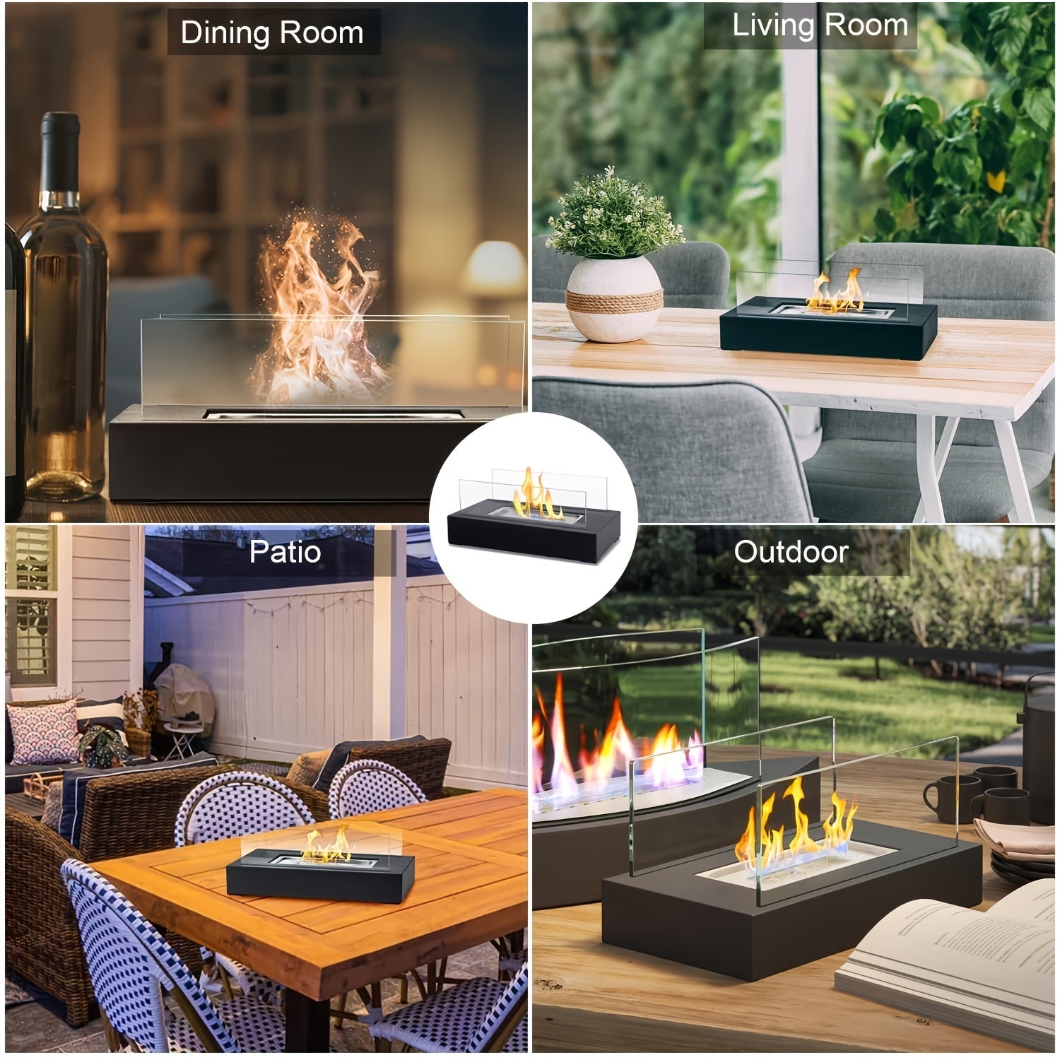 Glass Tabletop Fire Pit for Camping and Gatherings No Electricity Needed