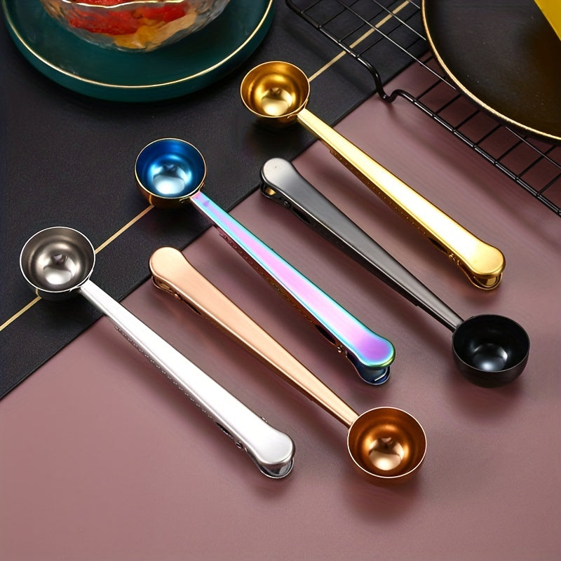 Stainless Steel Coffee Scoop with Bag Clip, Measuring Spoon, Sealing Clamp
