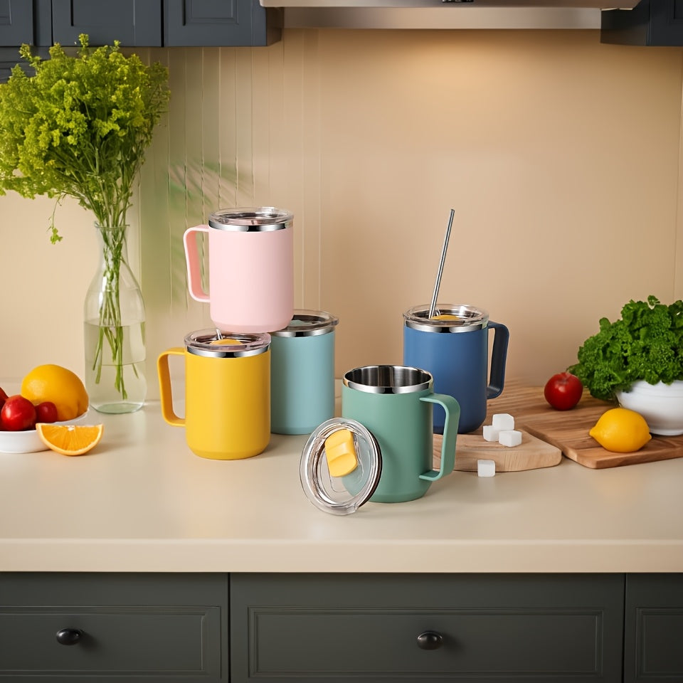 Colorful Insulated Coffee Mug with Handles Lids Double Wall Vacuum for Office Outdoor School