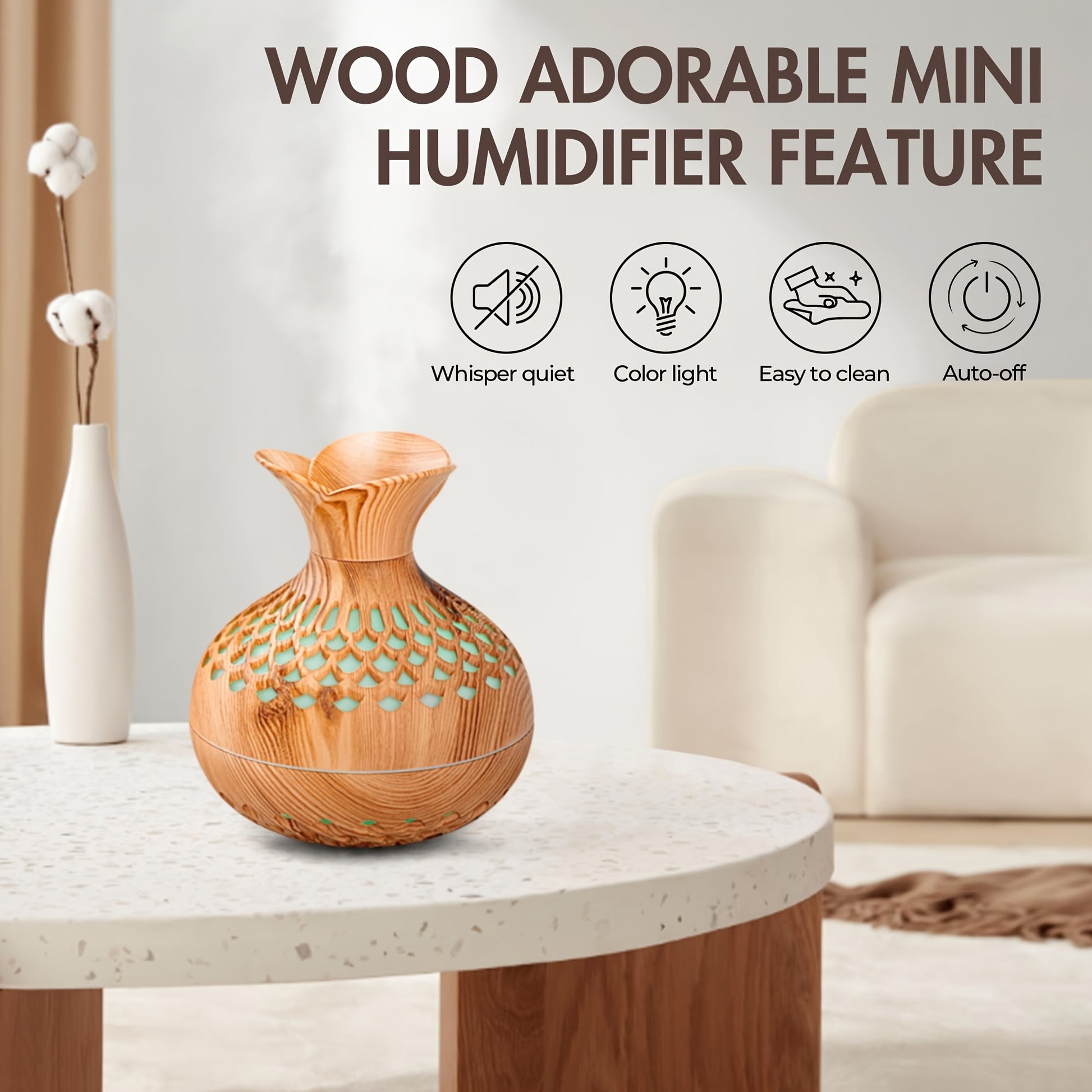 Colorful Mini Flower Humidifier 300ml Wooden Vase Aromatherapy Diffuser