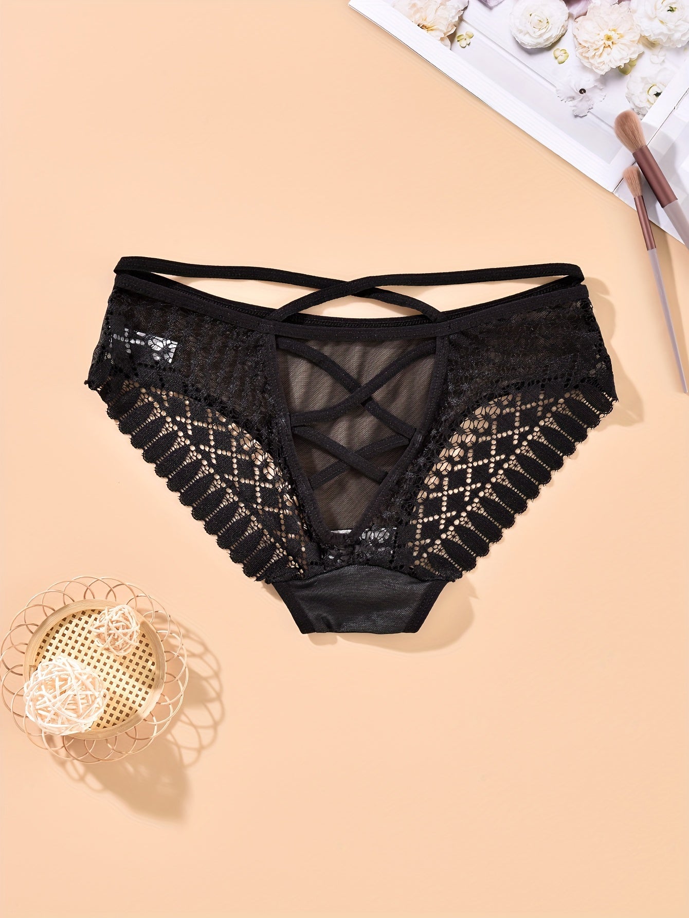Women's Mesh Hipster Panties with Cross Strap and Hollow Design