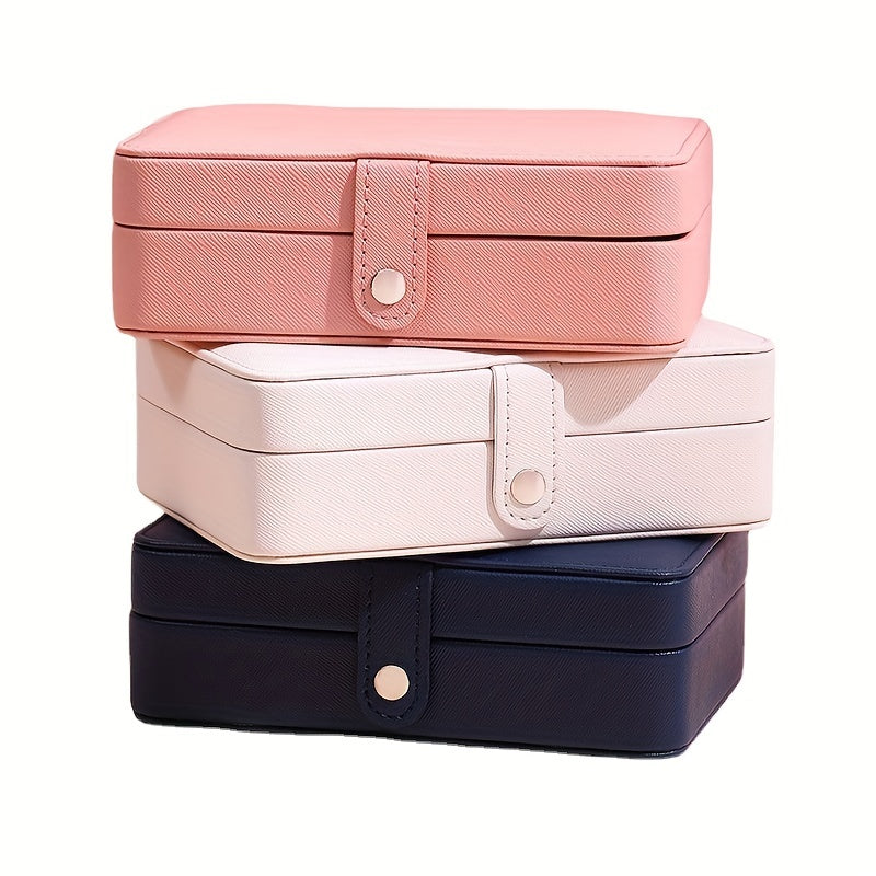 Leather Jewelry Box with Double Layers Mini Storage Case for Earrings Rings Necklaces