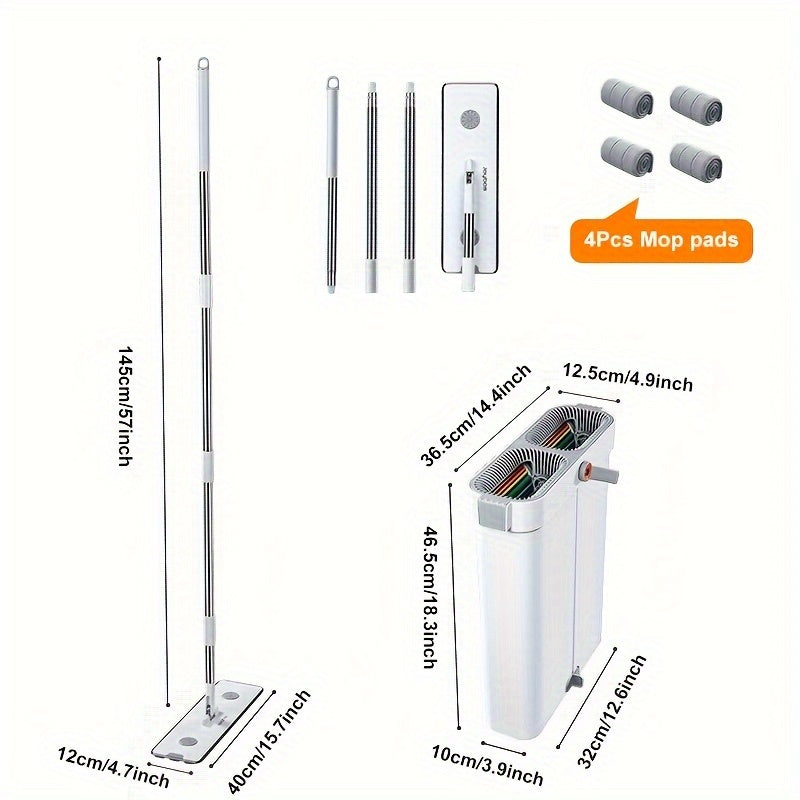 2-in-1 Flat Mop and Bucket Set with Reusable Pads for Kitchen and Floor Cleaning
