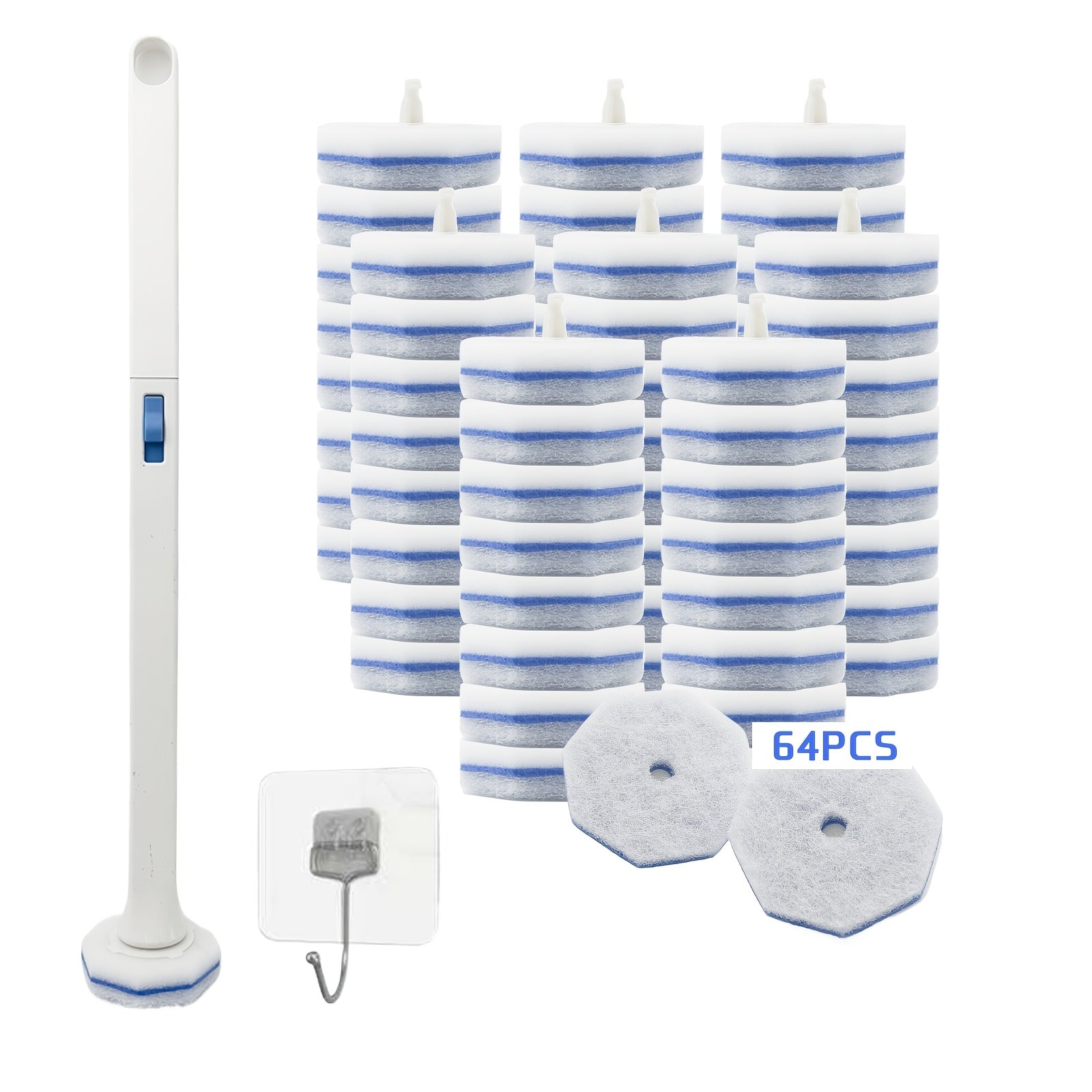 Polyurethane Toilet Brush Set with 64 Replacement Pads for Bathroom Cleaning