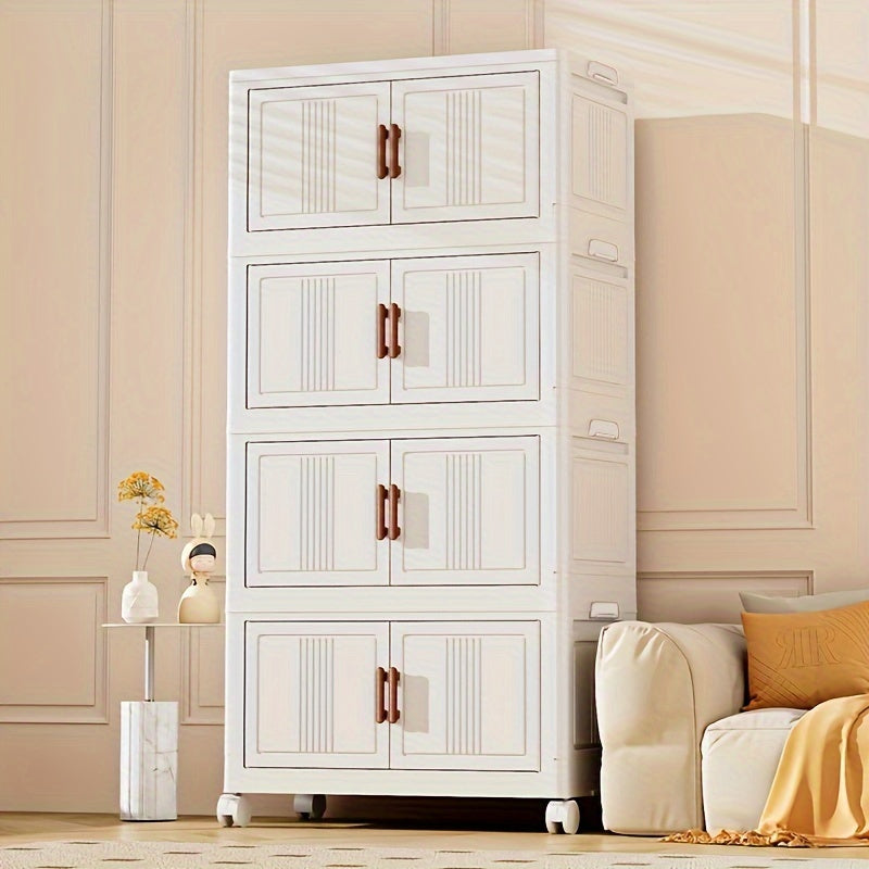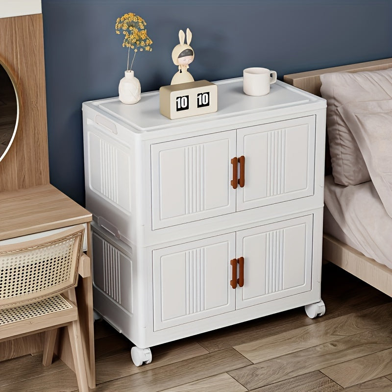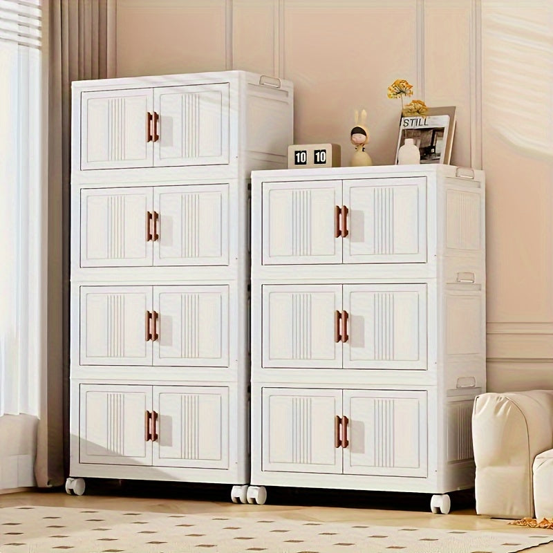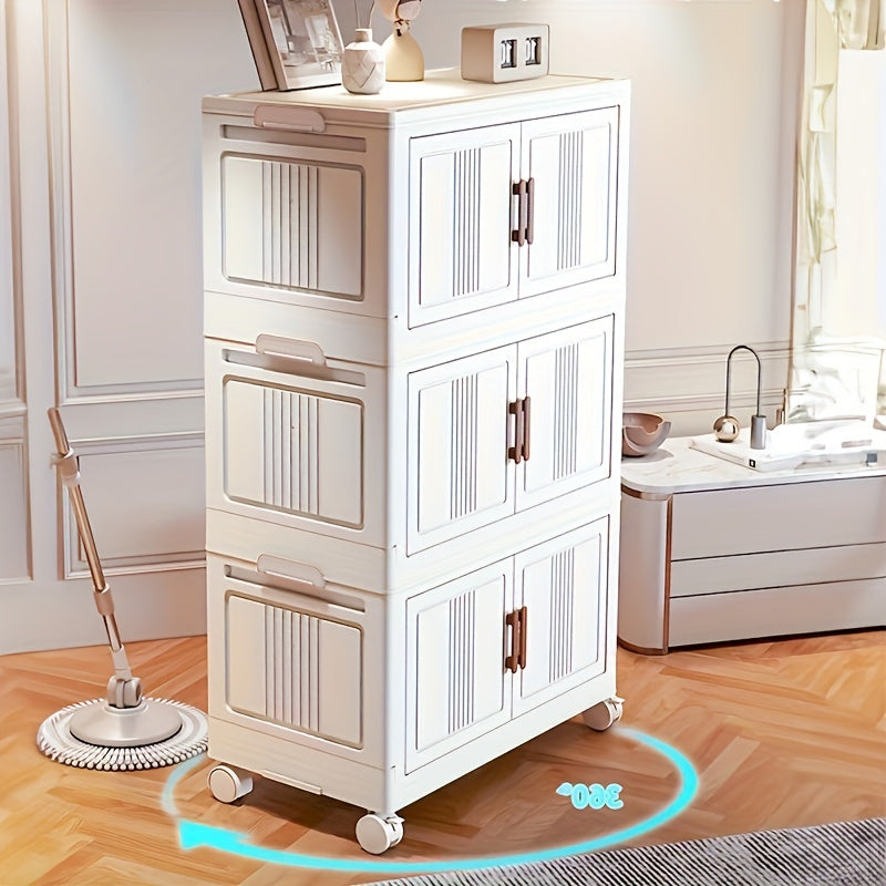 Plastic Storage Organizer with Wheels and Doors Large Capacity Stackable for Garage Basement and Playroom