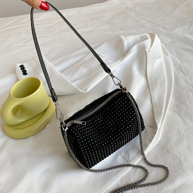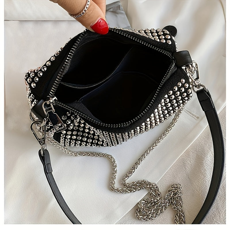 Women's Corduroy Messenger Bag with Black Diamond Pattern Zipper Closure Edge Painted