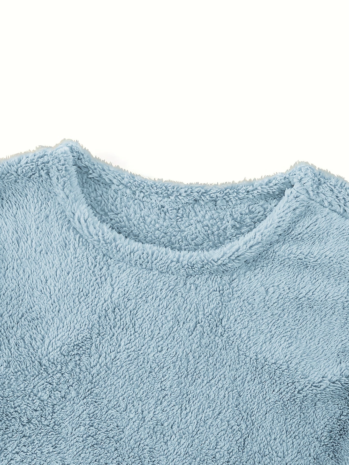 Women's Teddy Fleece Crew Neck Sweatshirt with Long Sleeves and Pocket for Fall Winter
