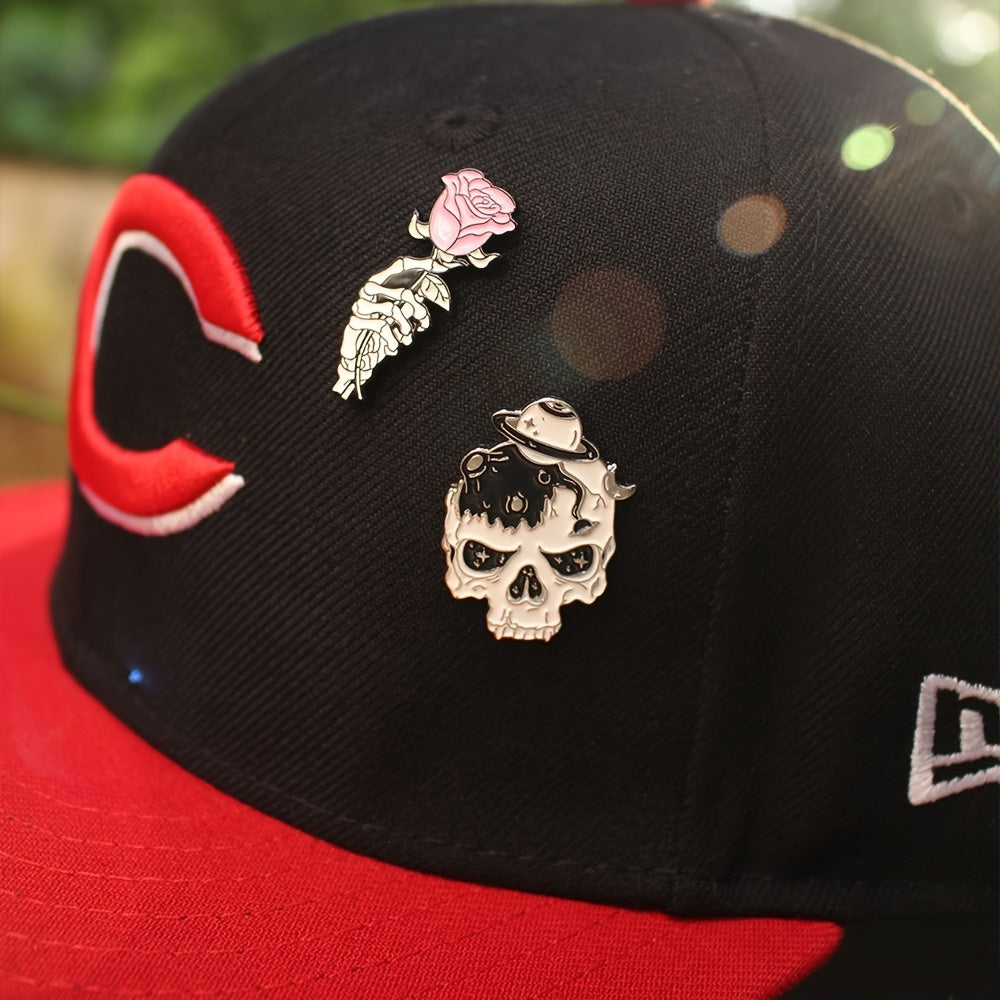 Red Rose Skull Brooch Romantic Metal Pin Zinc Alloy for Clothing Bag Ornament