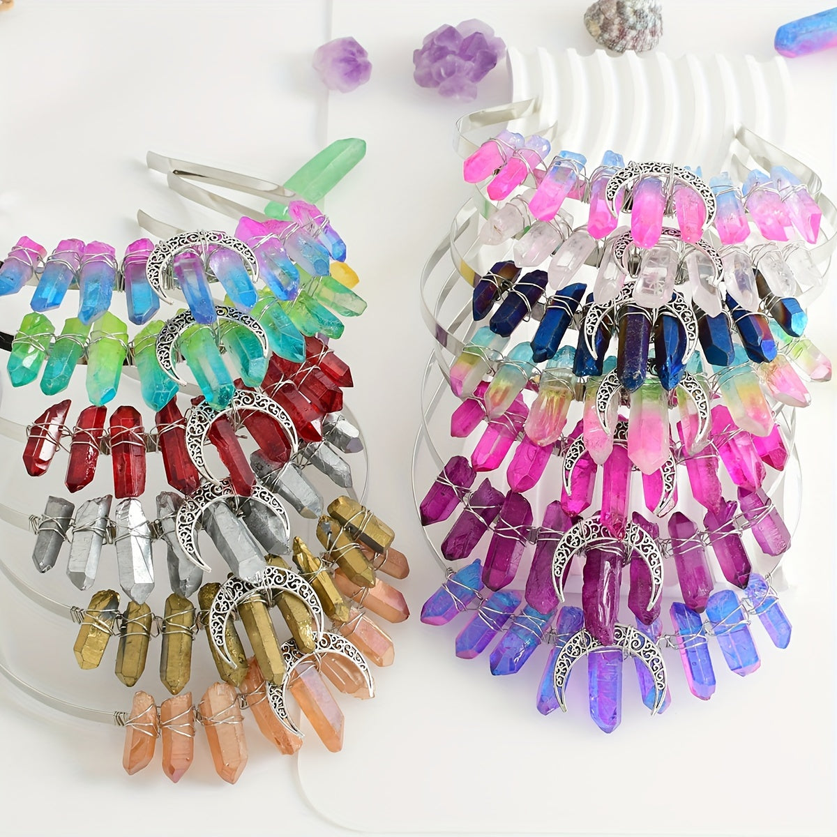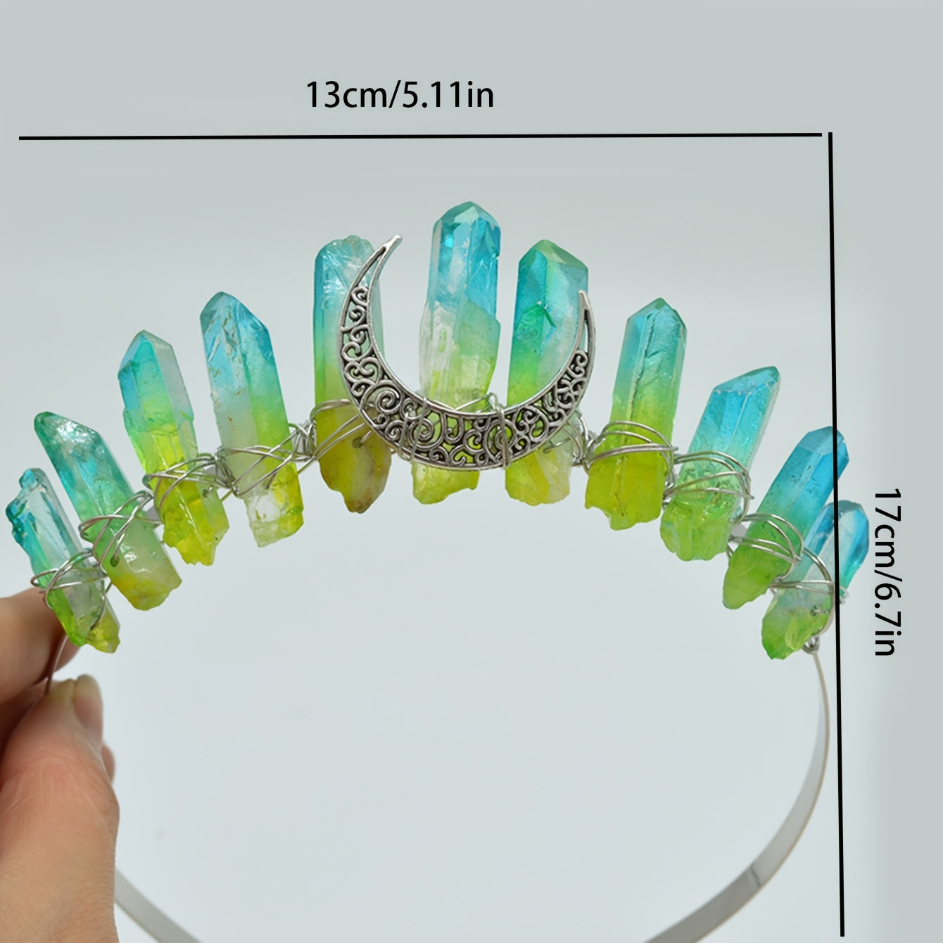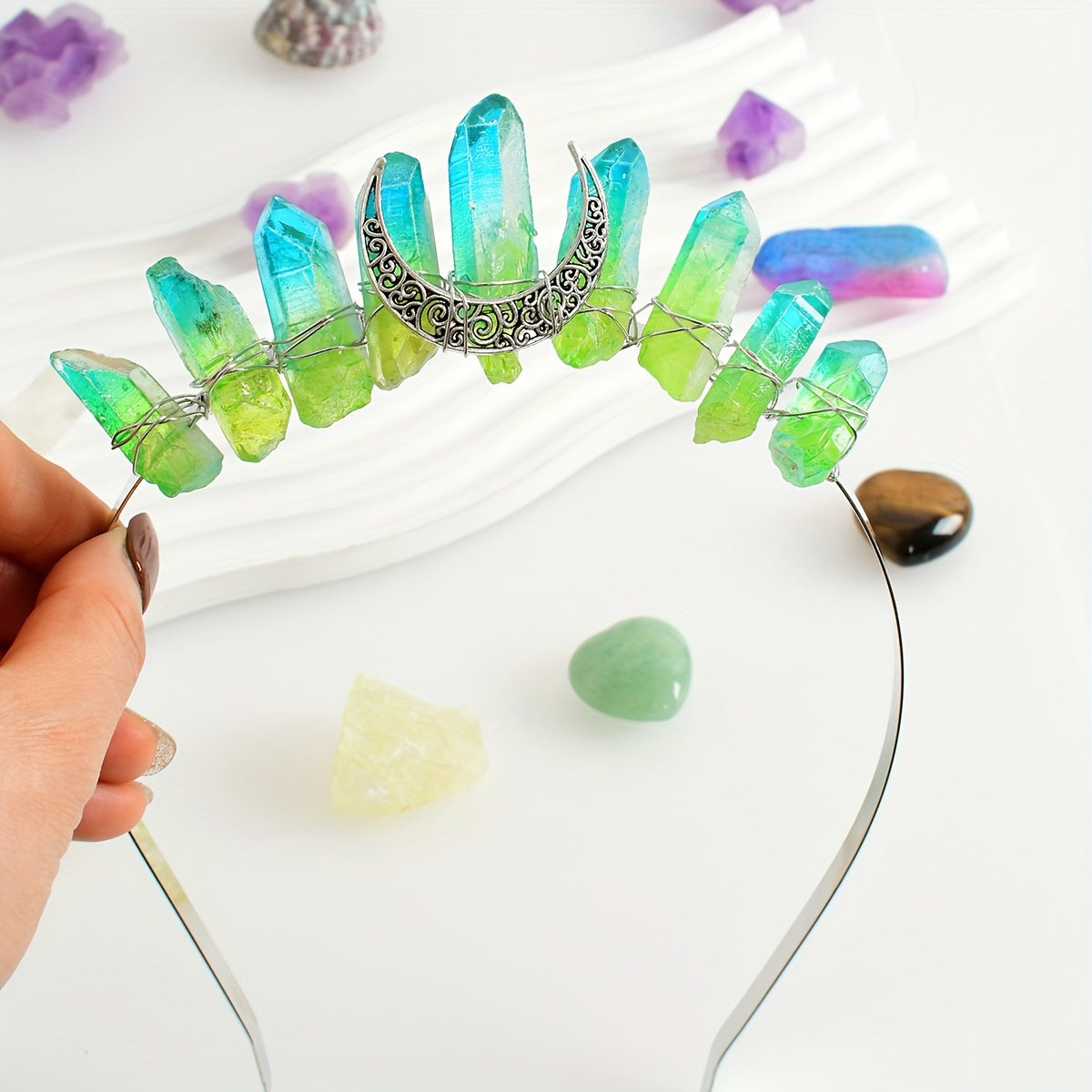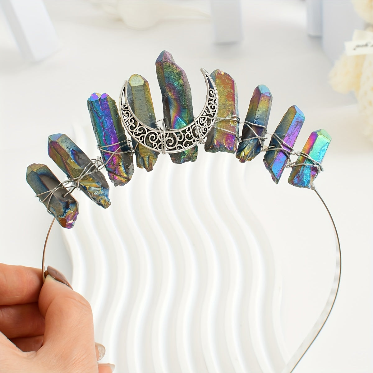 Women’s Crystal Quartz Raw Stone Crown Hairband Tiara for Weddings and Parties