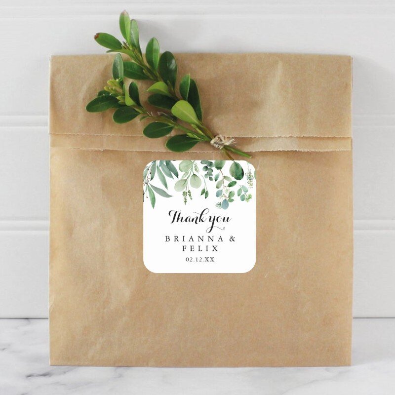 Personalized Paper Square Labels for Weddings and Parties, Custom Name and Date Stickers, Pack of XX