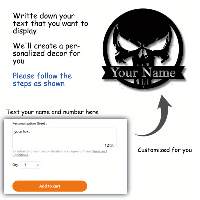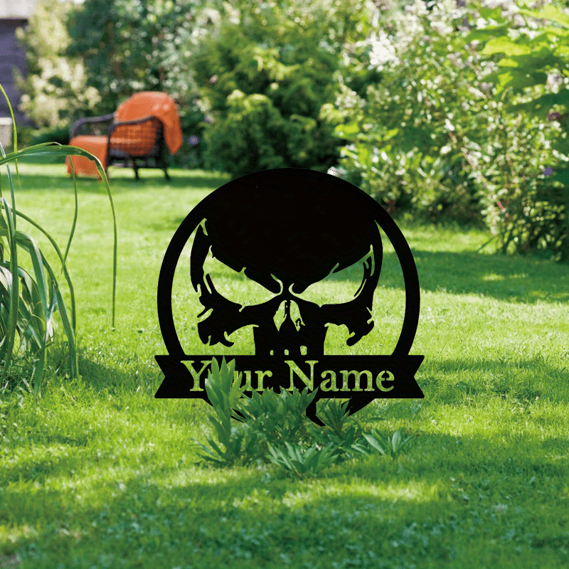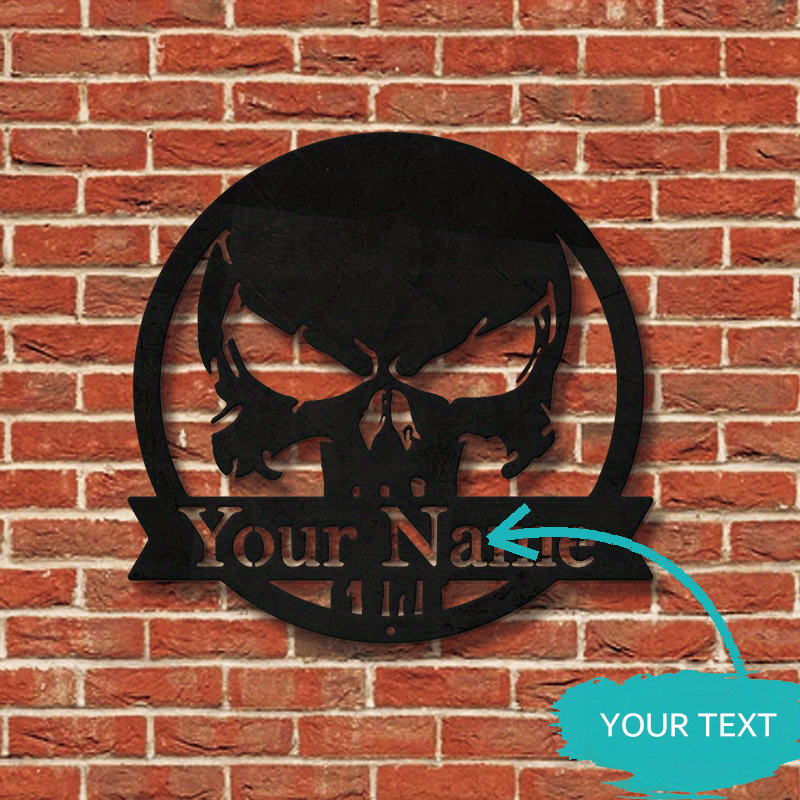 Personalized Skull Metal Wall Sign for Halloween and Day of the Dead Wall Art