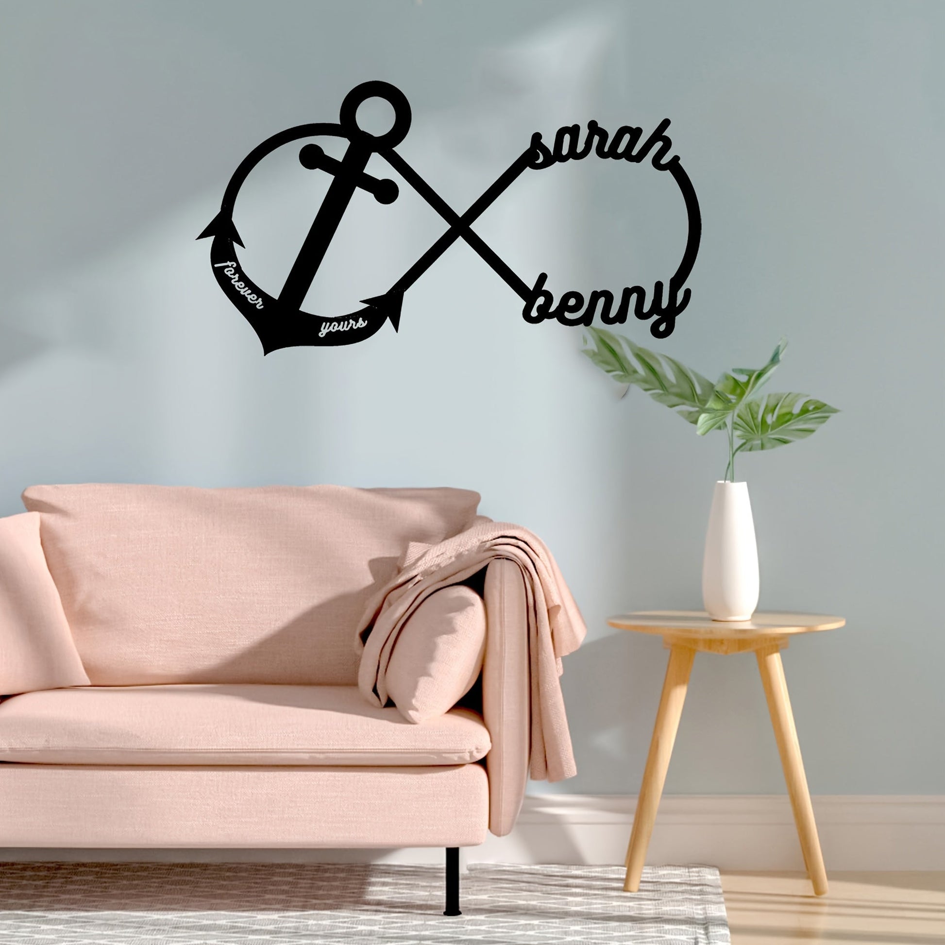 Personalized Metal Sign with Name Infinity Anchor Outdoor Decor for Valentine's Day and Weddings