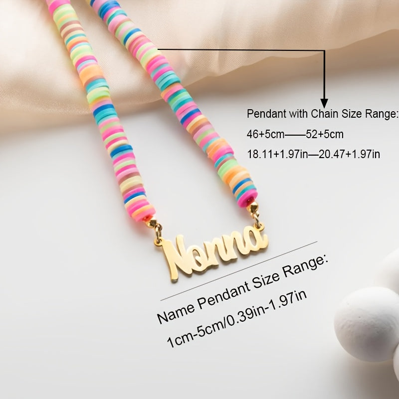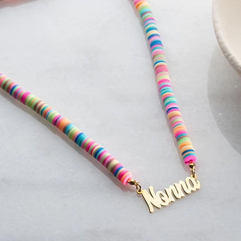 Rainbow Name Necklace in 18K Gold Plated with Polymer Clay Beads for Women