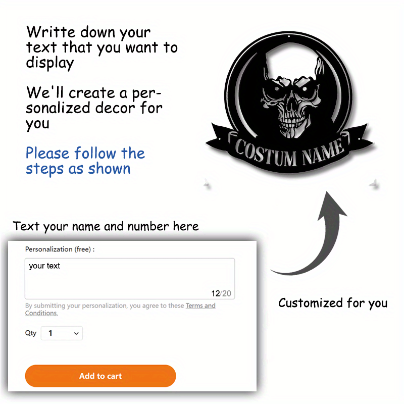 Customized Skull Metal Wall Sign Black Plaque Halloween Dia de los Muertos Decor