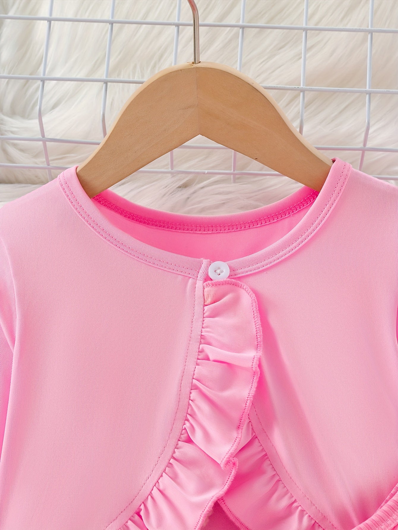 Girls' 2-Piece Dress Set with Frilled Cardigan and Cat Print Cami for Spring Fall Outdoor Activities