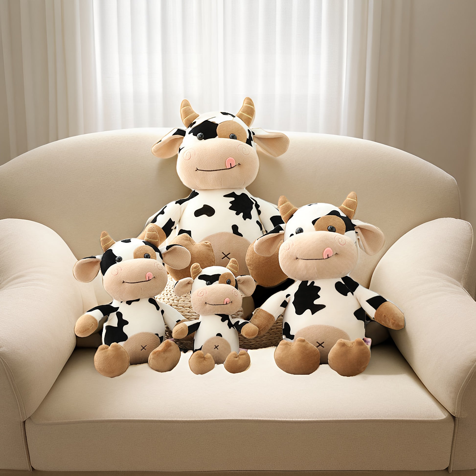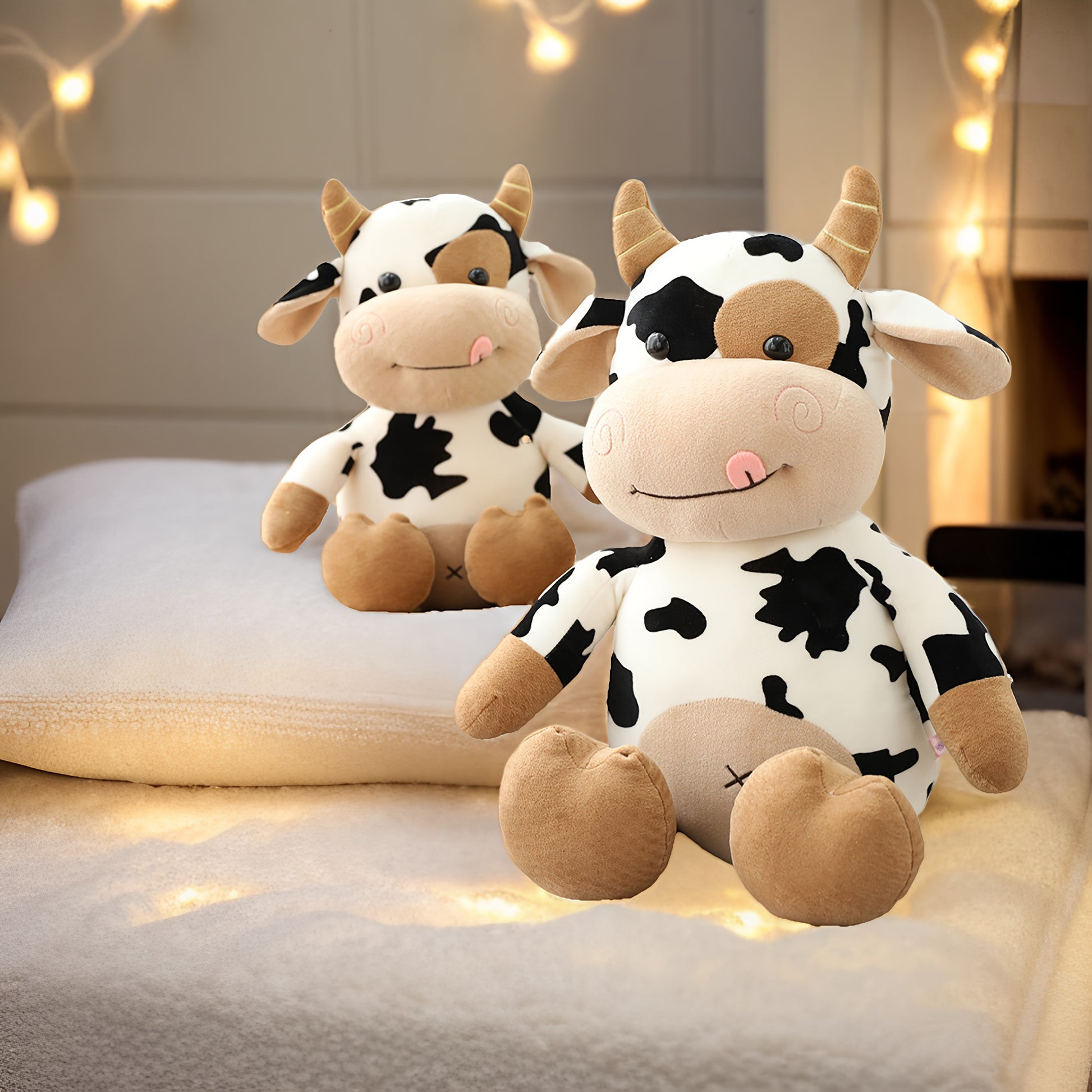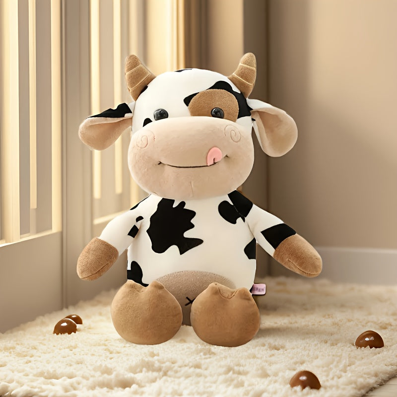 Cartoon Cow Plush Toy for All Ages Soft Polyester Brown White Cuddle Gift