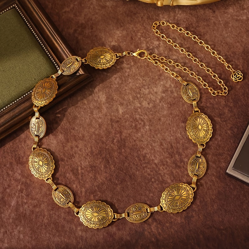 Women's Boho Style Waistband with Adjustable Chain Belt and Body Jewelry in Gold and Silver