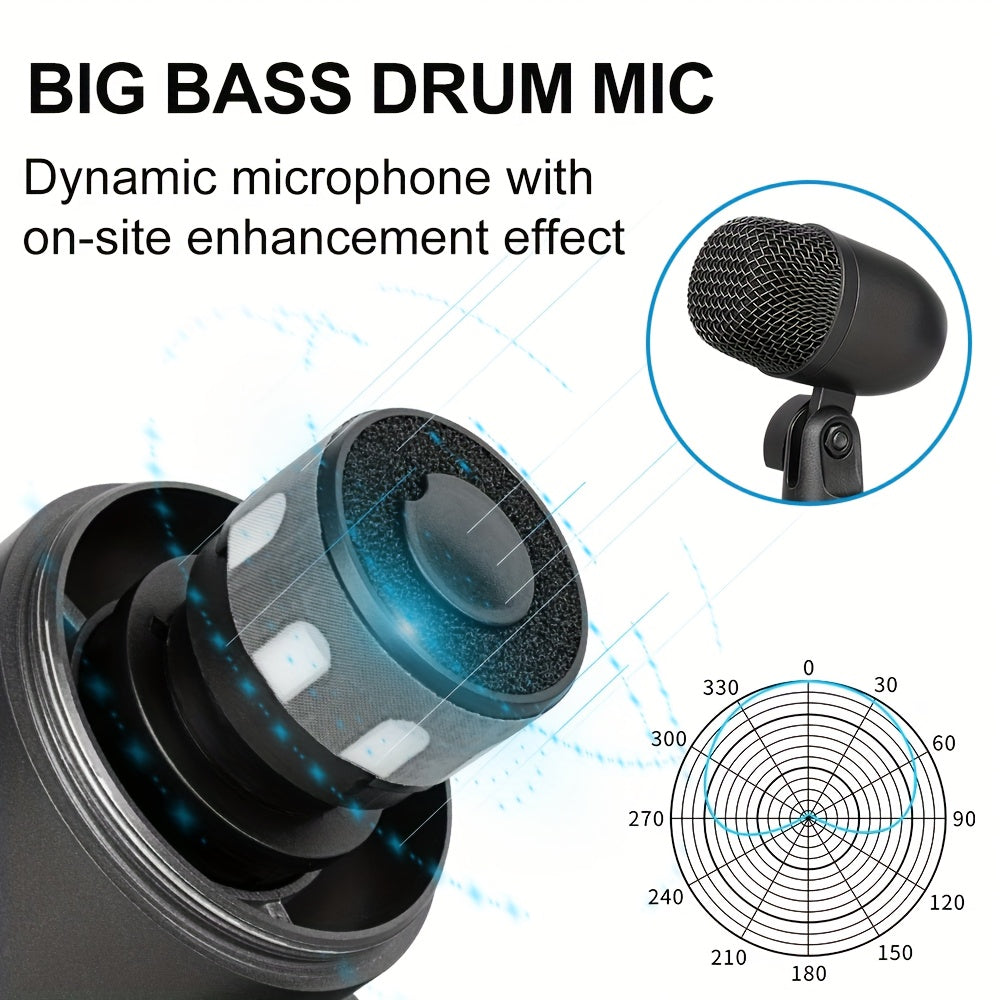 7pcs Wired Dynamic Microphone Kit for Drums All-Metal Construction for Stage Use