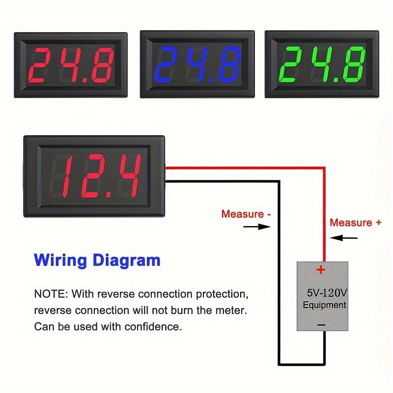 Digital Mini Volt Meter 5-120V LED Display Battery Monitor DC Voltage Tester