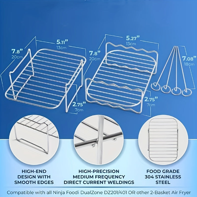 Double Layer Stainless Steel Air Fryer Rack with Skewers for Holidays