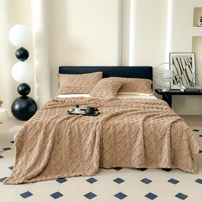 Double-Sided Velvet Office Blanket Rhombus Grid Tartan and Solid Color Square Pattern