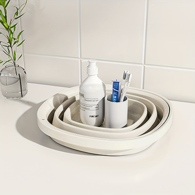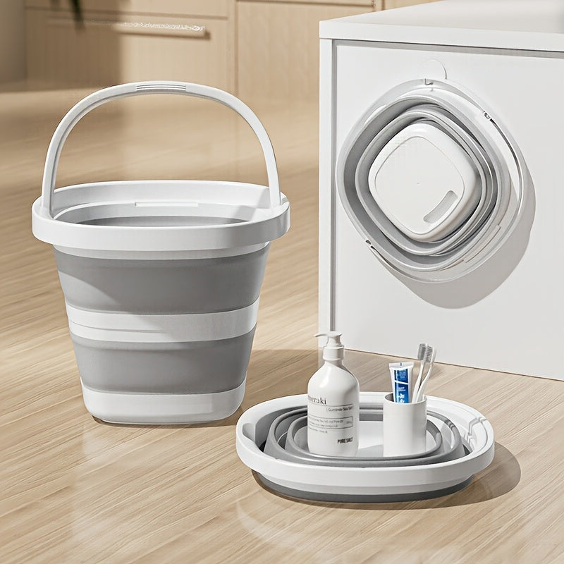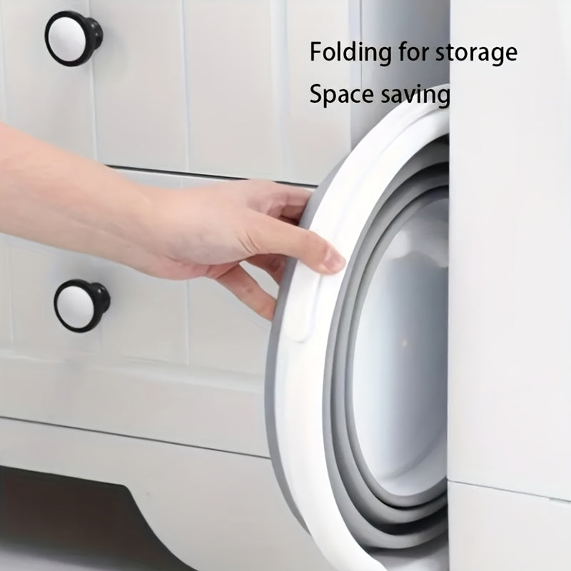Foldable Plastic Bucket with Handle for Car Wash Camping Fishing and Home Use Creamy White and Grey