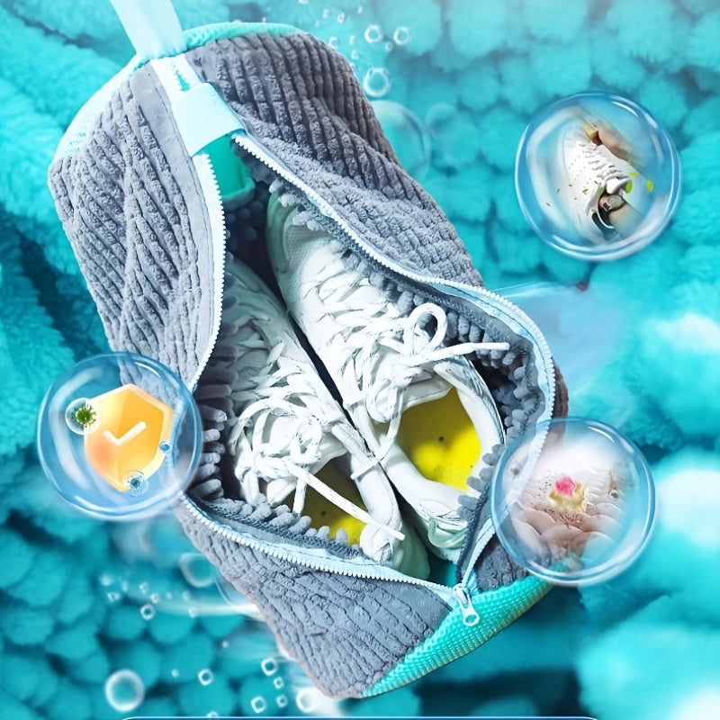 Gray Laundry Bag with Zipper Durable Polyester and Knit Fabric for Clothes Storage